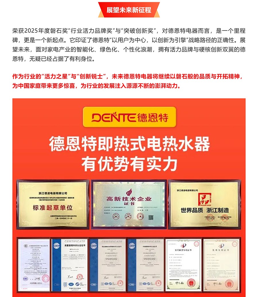 德恩特品牌旗下涵蓋即熱式電熱水器,速熱式電熱水器,快熱式電熱水器品牌和凈水機等